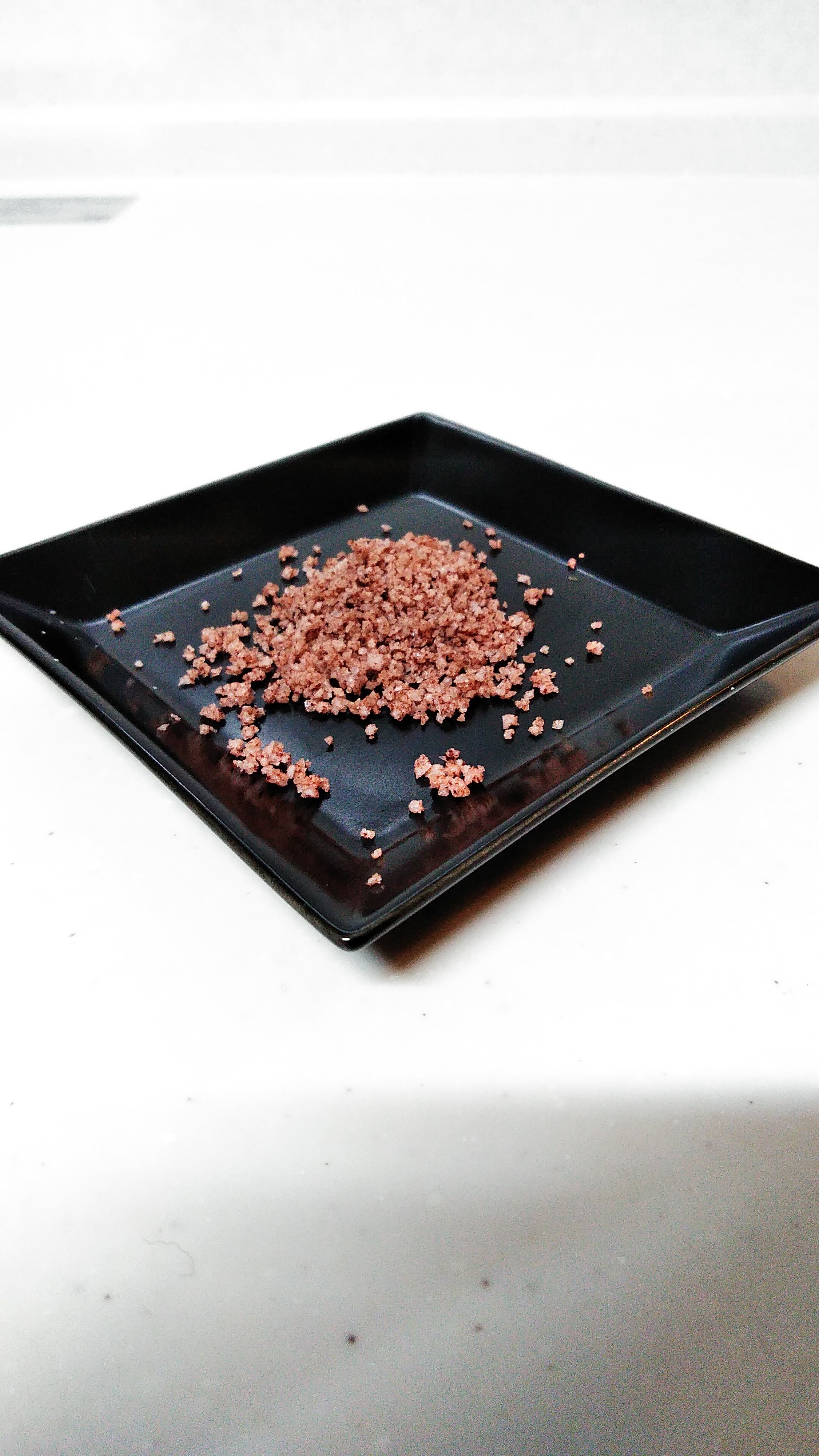 梅干しを乾燥・粉末にしたものを惜しみなく、桜色の塩に加えた合わせ塩です。