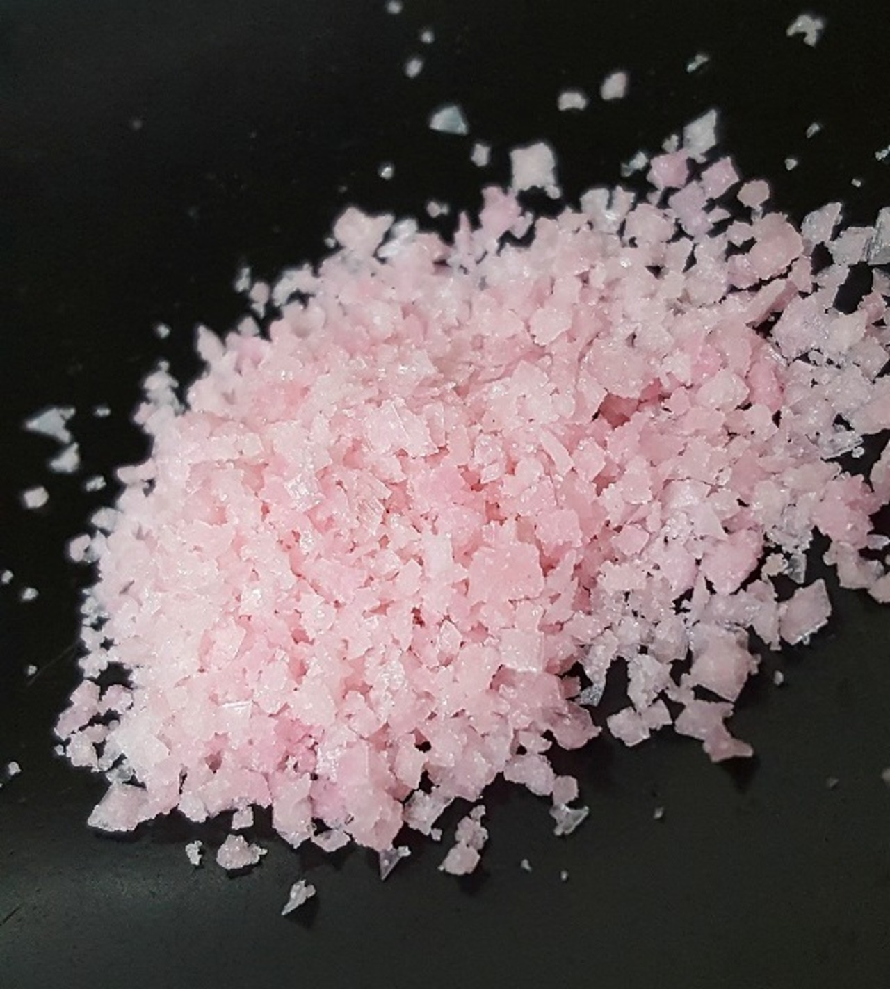 「海みたま 桜色」の塩は、振るいにかけた時の粗塩だけを集めて、塩寄りし梅干しの梅酢(塩、梅、赤紫蘇で出来ています)だけで染め上げた着色塩です。