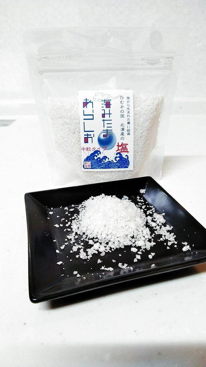 大きい粒→あらしお。一回の製造で少量しかとれません。
